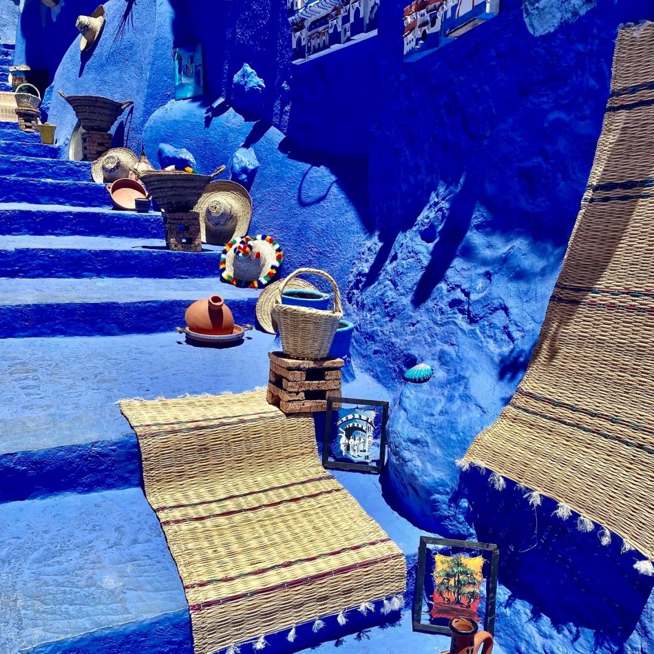 L’artisanat prend une place importante au sein de Chefchaouen. Beaucoup de magasins exposent leurs créations sur les murs bleus. Les idées pour ramener un souvenir de Chefchaouen ne manquent pas : Tapis, tableaux, luminaires, décorations, épices, huiles…et bien plus encore ! Un souvenir de Chefchaouen dans votre maison, c’est un petit bout de voyage chez vous.